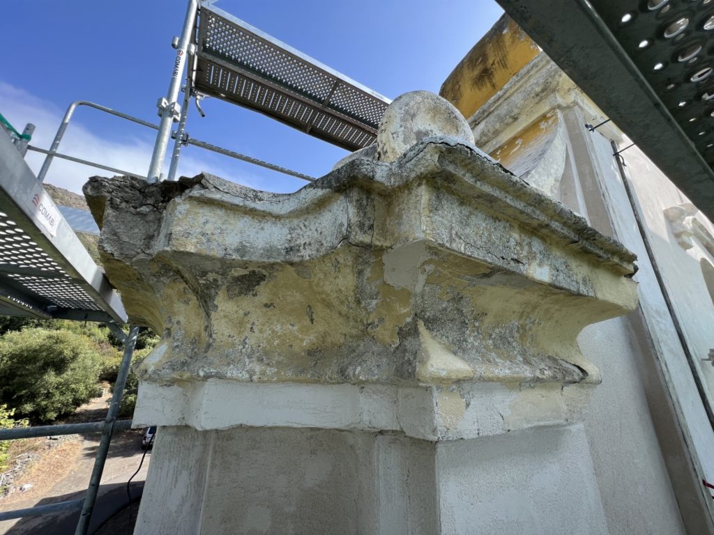 Les prescriptions prévoyaient le piquetage des enduits cimentés, la réfection des maçonneries abîmées et la restitution d’un enduit à la chaux, adapté au climat marin et à la nature du bâti.